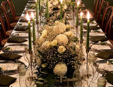 We take pride in curating tablescapes that are more than just settings; they are expressions of artistry and elegance. From the choice of linens and tableware to the arrangement of flowers, candles, and other decorative elements, every aspect is thoughtfully selected to create a harmonious and enchanting atmosphere.